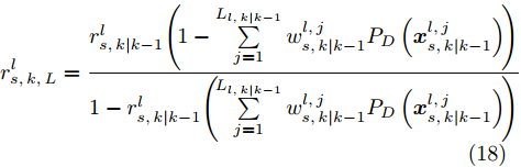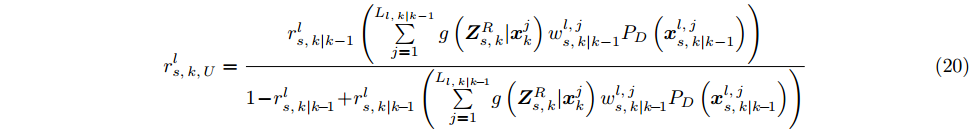 摘要: 针对感知范围受限的分布式传感网多目标跟踪问题, 在多伯努利滤波跟踪理论基础上提出分布式视场互补多伯努利关联算术平均融合跟踪方法. 首先, 通过视场互补扩大传感器感知范围, 其中, 局部公共区域只互补一次以降低计算成本. 其次, 每个传感器分别运行局部多伯努利滤波器, 并将滤波后验结果与相邻传感器进行泛洪通信使得每个传感器获取多个相邻传感器的后验信息. 随后, 通过距离划分进行多伯努利关联, 将对应于同一目标的伯努利分量关联到同一个子集中, 并对每个关联子集进行算术平均融合完成融合状态估计. 仿真实验表明, 所提方法在有限感知范围的分布式传感器网络中能有效地进行多目标跟踪.Abstract: In order to solve the problem of multi-target tracking in distributed sensor networks with limited sensing range (LSR), a distributed arithmetic average (AA) fusion multi-Bernoulli filter is proposed based on field of view complementation and multi-Bernoulli association. First, the sensor's sensing range is expanded by complementing the field of view, in which the local common areas are complemented only once to reduce the calculation cost. Secondly, each sensor separately operates a local multi-Bernoulli filter and conducts flood communication between neighbor sensors over the filter posteriors, so that each sensor can obtain posterior information of multiple sensors. Then, multi-Bernoulli correlation is performed by distance division to associate Bernoulli components corresponding to the same target to the same subset, and the AA fusion is performed for each associated subset to complete fusion state estimation. Simulation results show that the proposed method can effectively track multiple targets in distributed sensor networks with LSR.