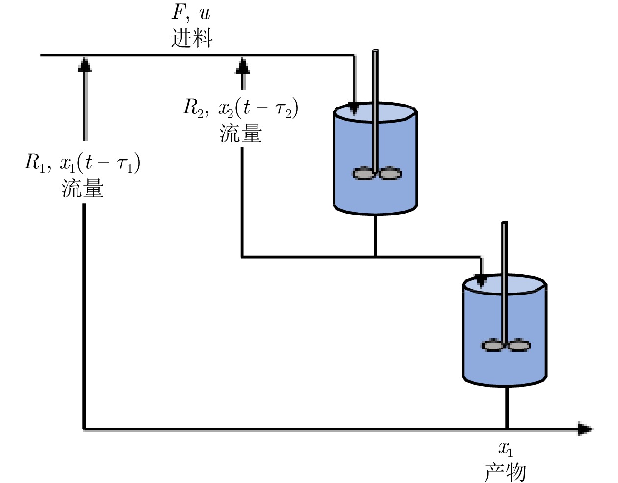 摘要: 研究含有状态时延的严反馈非线性系统的跟踪控制问题, 充分考虑时延的时变性和任意性以及系统的未知动力学特性. 为解决该问题, 取代参数辨识、函数逼近、增益调节、指令滤波等常规技术, 提出基于导向函数的预设性能控制方法, 移除了控制器设计对于系统非线性、控制方向和虚拟控制信号导数等信息的依赖. 并且, 摆脱基于李雅普诺夫−克拉索夫斯基泛函或拉祖米欣函数的稳定性分析框架, 采用基于反证法的受限分析理论, 移除性能分析对于已知的时延上界、部分已知的时延非线性函数和时延导数小于1等常见约束. 因此, 形成无模型、低复杂度、高性能控制方法, 将跟踪误差限制于设计者预先选取的性能包络线内, 确保系统输出以预先设定的速度和精度跟踪上时变的设定值. 最后, 以具有延迟回收流的两级化学反应器为对象开展对比仿真, 实验结果验证了所提方法的有效性和优越性.Abstract: This paper is concerned with the tracking control problem for time-delay strict-feedback nonlinear systems, in which the time-varying arbitrary state delays and the completely unknown system dynamics are taken into full consideration. To address this problem, instead of parameter identification, function approximation, gain adaption and command filtering, an orientation function-based prescribed performance control approach is put forward. It eliminates the dependence of the control design on the system nonlinearities, the control directions and the virtual control signal derivatives. Moreover, in lieu of the stability analysis based on Lyapunov-Krasovskii functionals or Razumikhin functions, a framework for constraint analysis by contradiction is adopted. It excludes the commonly adopted assumptions on the known bounds of time-delays, the partially known time-delay nonlinearities and the time-delay derivatives less than 1. Therefore, a model-free low-complexity high-performance control scheme is obtained, which confines the tracking error inside the predefined performance envelop. In this way, it is achieved that the system output tracks the time-varying reference with the prescribed rate and accuracy. Finally, a comparative simulation on the two-stage chemical reactor with delayed recycle streams is conducted, and the simulation results substantiate the effectiveness and the superiority of the proposed approach.